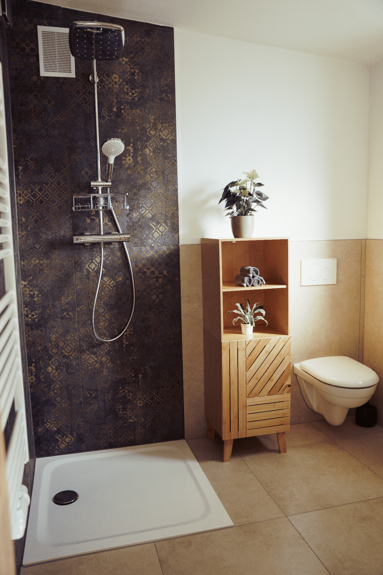 -Dusche -Toilette -Waschtisch -Föhn -Handtücher -Toilettenpapier