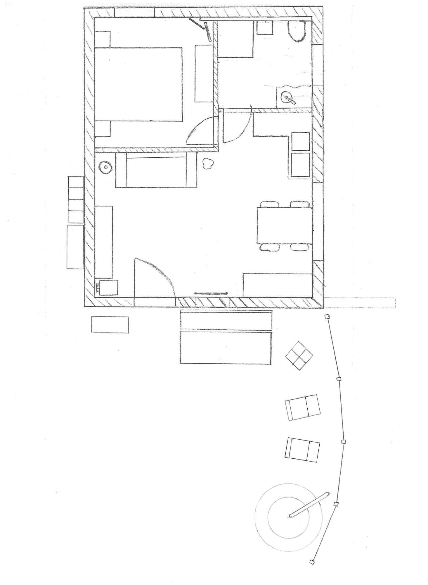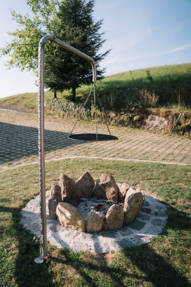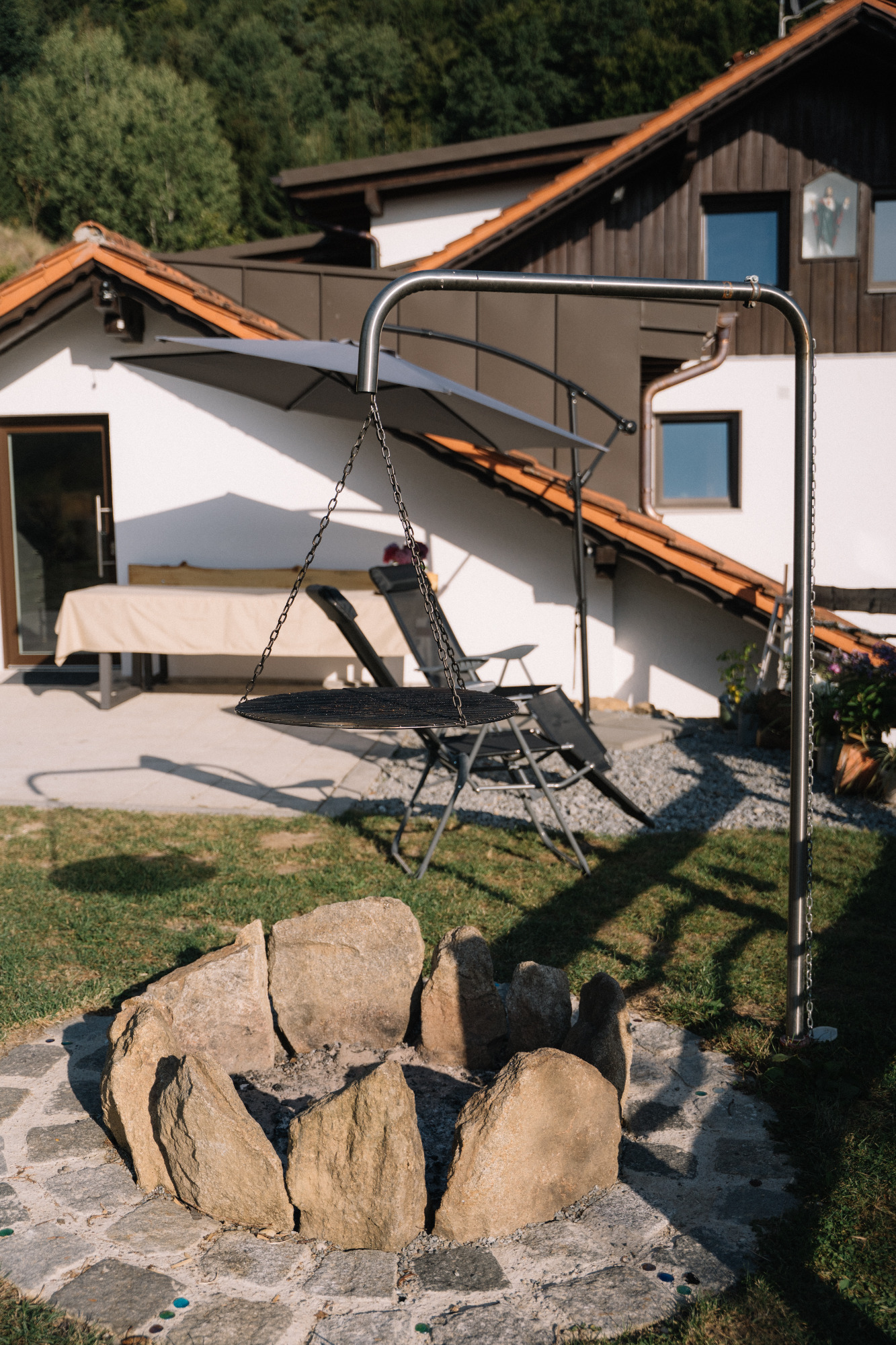 -eigener großer Außenbereich -Sitzmöglichkeit -Liegestühle -Sonnenschirm -Feuerstelle mit Schwenkgrill -Müllentsorgung