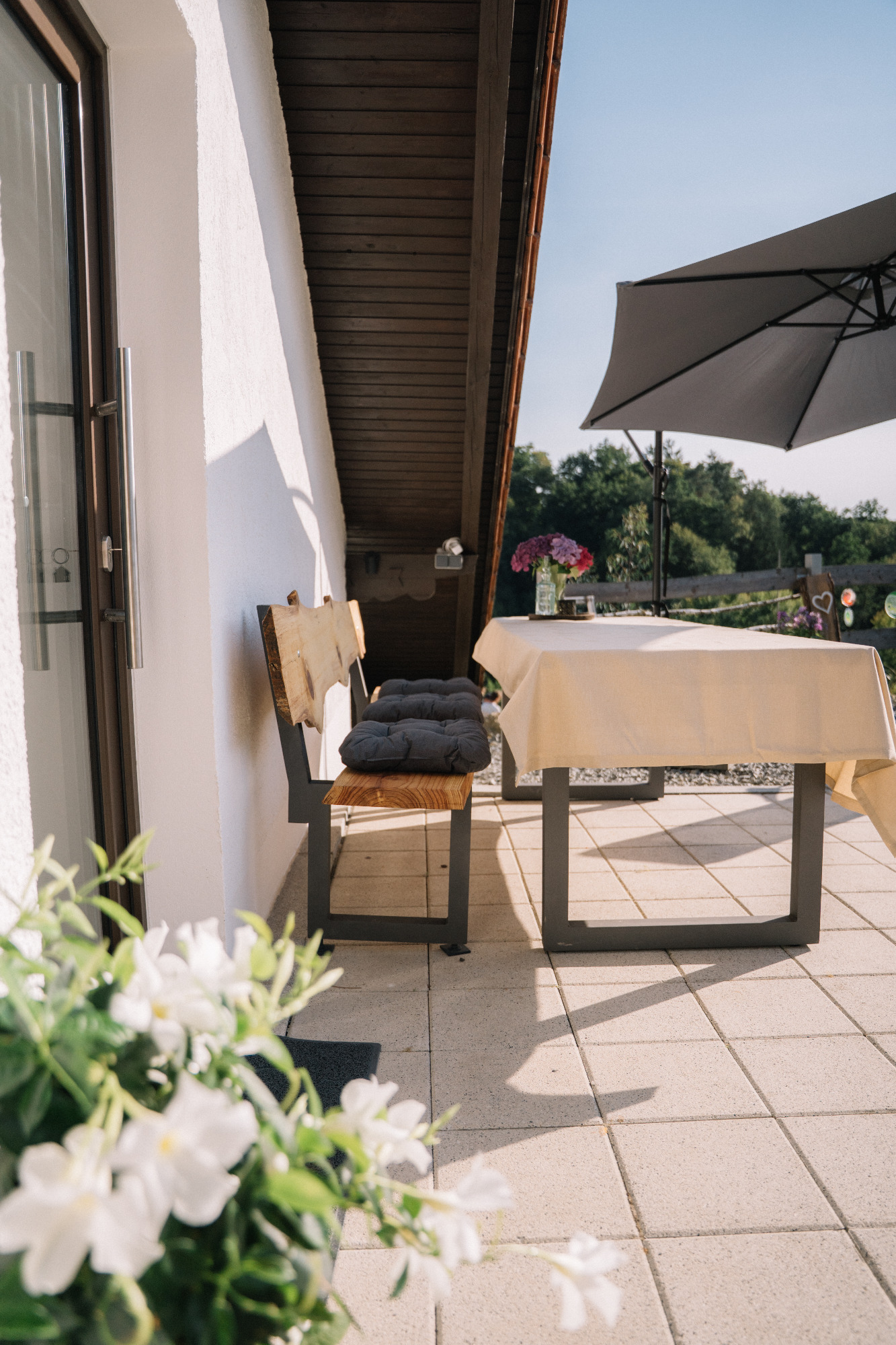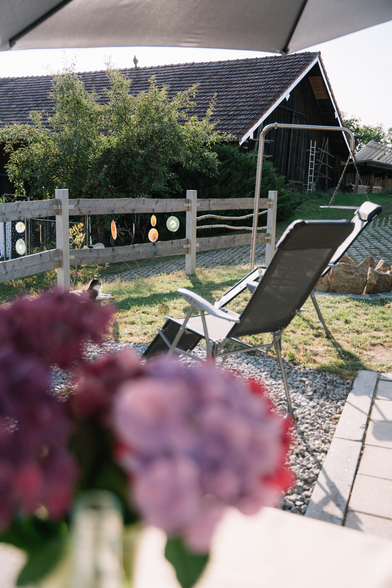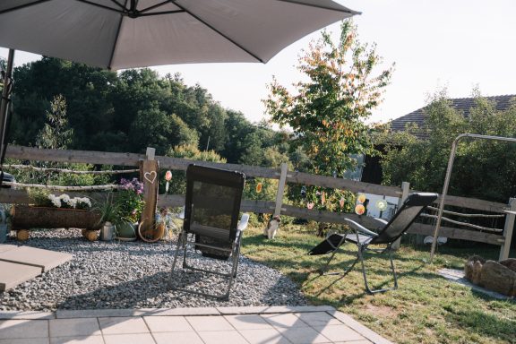 Besonders schön ist die Außenanlage der Ferienwohnung, es steht eine Terasse mit einem kleinen Gartenabteil zur Verfügung. Eine Esstischgruppe lädt zum verweilen ein. Es stehen Liegestühle und ein Sonnenschirm zur Verfügung. Eine Feuerstelle kann ebenso benutzt werden. Feuerholz gibt es gegen einen kleinen Unkostenbeitrag.