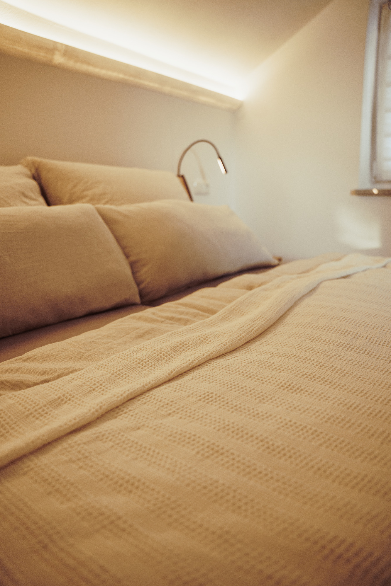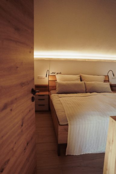 -Doppelbett (180cm x 200cm) -Federkissen -Smart TV -Garderobe -Kommode -indirekte Beleuchtung und Leselicht
